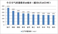 人民网北京5月14日电(李楠桦)根据环保部公布的最新数据,截至今天早上7时,临沂的AQI(空气质量指数)为272,属于重度污染,成为161个参与空气质量排名的城...