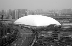 这是5月13日在杭州市拍摄的巨型“帐篷”。一座相当于3个标准足球场大小的白色充气大棚近日现身杭州市新风路附近。占地2万平方米、高36米的大棚下的地块从2009年...
