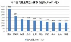 人民网北京5月13日电(蒋琪)根据环保部公布的最新数据,截至今天早上7时,荆州的AQI(空气质量指数)为409,属于重度污染,成为161个参与空气质量排名的城市...