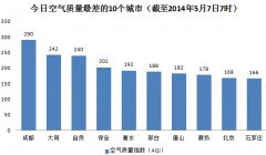 人民网北京5月7日电(杨翼)根据环保部公布的最新数据,截至今天早上7时,成都的AQI(空气质量指数)为290,属于重度污染,成为161个参与空气质量排名的城市中...