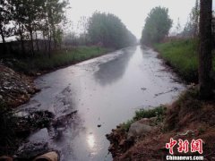 虞城县城南的十字河变成了“黑水河”,官方称将治理 董飞 摄中新网商丘4月23日电(记者董飞陈征帆)河南虞城县工业园排出的污水绵延数十里,染黑河道,当地村民多次反...