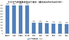 人民网北京4月24日电(杨翼)根据环保部公布的最新数据,截至今天早上7时,嘉峪关、金昌、石嘴山和库尔勒的AQI(空气质量指数)一起“爆表”达到500,属于严重污...