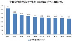 人民网北京4月22日电(杨翼)根据环保部公布的最新数据,截至今天早上7时,临沂的AQI(空气质量指数)达到313,属于严重污染,成为161个参与空气质量排名的城...