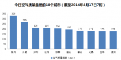 人民网北京4月17日电根据环保部公布的最新数据,截至今天早上7时,泉州的AQI(空气质量指数)达到328,属于严重污染,成为161个参与空气质量排名的城市中空气...