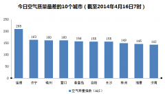 人民网北京4月15日电根据环保部公布的最新数据,截至今天早上7时,淄博的AQI(空气质量指数)达到208,属于重度污染,成为161个参与空气质量排名的城市中空气...