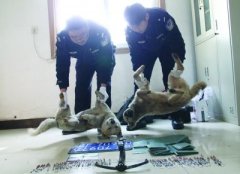 民警抬着被飞针射中的狗的尸体。汤来伢焦哲摄扬子晚报讯(记者焦哲)最近南京市溧水区不少居民家中饲养的狗都莫名失踪。警方调查发现是有四名男子乘坐一辆安徽牌照的黑色轿...