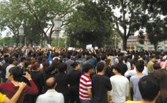 昨日下午,茂名市民聚集在市委门口等候最新消息。当天15:30,茂名市政府就PX项目及事件总体处置情况召开新闻发布会。梁春克摄昨日下午,广东茂名市人民政府新闻办公...
