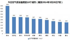 3月29日空气质量最差10城市人民网北京3月29日电(记者杜燕飞)根据环保部公布的最新数据,截至今日早上7时,岳阳的AQI(空气质量指数)“爆表”,达到500,...