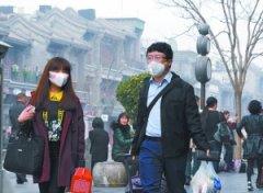 昨天上午,两位外地游客戴着口罩游览前门大街。记者李继辉摄昨天,本市的最高气温再次超过23℃,但碍于雾霾的侵扰,京城的春色中少了天空的一抹蓝。由于污染物扩散条件进...