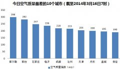 人民网北京3月16日电(杨翼)根据环保部公布的最新数据,截至今天早上7时,库尔勒的AQI(空气质量指数)为298,属于重度污染,成为161个参与空气质量排名的城...