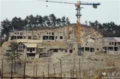 双峰山回龙生态度假村施工现场被砍伐的树木度假村内的别墅式酒店建成后的示意图3月11日,有网友在东湖社区爆料:有开发商在孝感市双峰山旅游度假区内炸山毁林,违规建设...