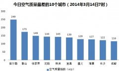 人民网北京3月14日电(杨翼)根据环保部公布的最新数据,截至今天早上7时,库尔勒的AQI(空气质量指数)为249,属于重度污染,成为161个参与空气质量排名的城...