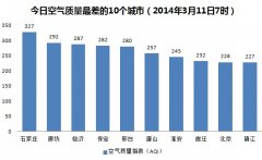 人民网北京3月11日电(杨翼)根据环保部公布的最新数据,截至今天早上7时,石家庄AQI(空气质量指数)达到327,属于严重污染,成为161个参与空气质量排名的城...