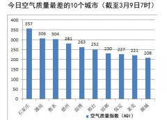 人民网北京3月9日电(记者杜燕飞)根据环保部公布的最新数据,截至3月9日早上7时,石家庄的空气质量指数(AQI)为357,属于重度污染,成为161个参与空气质量...