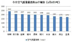 人民网北京3月6日电(蒋琪)根据环保部公布的最新数据,截至今天早上7时,邯郸的AQI(空气质量指数)达到242,属于重度污染,成为161个参与空气质量排名的城市...