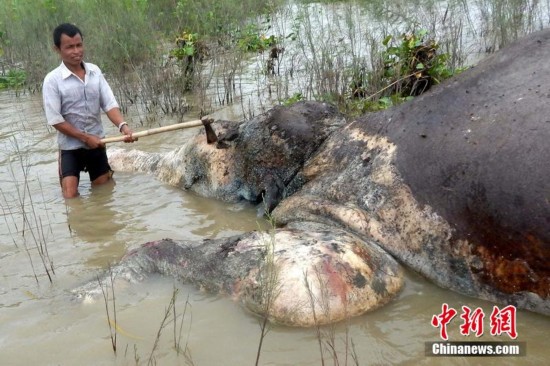原标题:印度野象遭猎杀 象鼻被割惨死河中