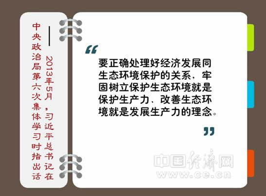 正确处理“生态环境和生产力”的关系 要正确处理好经济发展同生态环境保护的关系,牢固树立保护生态环境就是保护生产力、改善生态环境就是发展生产力的理念。 ——2013年5月,习近平总书记在中央政治局第六次集体学习时指出 解读:长期以来,我国坚持以经济建设为中心,推动经济快速发展起来,在这个过程中,一些地方、一些领域没有处理好经济发展同生态环境保护的关系,以无节制消耗资源、破坏环境为代价换取经济发展,导致能源资源、生态环境问题越来越突出。这种状况不改变,能源资源将难以支撑、生态环境将不堪重负,反过来必然对经济可持续发展带来严重影响,我国发展的空间和后劲将越来越小。习近平总书记指出:“我们在生态环境方面欠账太多了,如果不从现在起就把这项工作紧紧抓起来,将来会付出更大的代价。” 实践证明,脱离环境保护搞经济发展是“竭泽而渔”,离开经济发展抓环境保护是“缘木求鱼”。经济发展决定人们的生活水平,生态环境决定人们的生存条件。生态问题不能用停止发展的办法解决,保护优先不是反对发展,其核心是要正确处理保护与发展的关系,在发展中保护生态环境,用良好的生态环境保证可持续发展。事实证明,我们可以把生态文明建设和环境保护工作与推动产业发展、群众脱贫致富紧密结合起来。 我们只有更加重视生态环境这一生产力的要素,更加尊重自然生态的发展规律,保护和利用好生态环境,才能更好地发展生产力,在更高层次上实现人与自然的和谐。要克服把保护生态与发展生产力对立起来的传统思维,下大决心、花大气力改变不合理的产业结构、资源利用方式、能源结构、空间布局、生活方式,更加自觉地推动绿色发展、循环发展、低碳发展,决不以牺牲环境、浪费资源为代价换取一时的经济增长,决不走“先污染后治理”的老路,探索走出一条环境保护新路,实现经济社会发展与生态环境保护的共赢。