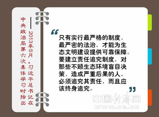 最严密的法治为生态文明建设提供可靠保障 只有实行最严格的制度、最严密的法治,才能为生态文明建设提供可靠保障。要建立责任追究制度,对那些不顾生态环境盲目决策、造成严重后果的人,必须追究其责任,而且应该终身追究。 ————2013年5月,习近平总书记在中央政治局第六次集体学习时指出 解读:习近平总书记提出的“实行最严格的制度、最严密的法治”的“最严”生态“法治观”,充分表达了中央的坚决态度,同时也牢牢抓住了生态文明建设的“牛鼻子”。 建设生态文明是一场涉及生产方式、生活方式、思维方式和价值观念的革命性变革。实现这样的根本性变革,必须依靠制度和法治。我国生态环境保护中存在的一些突出问题,大都与体制不完善、机制不健全、法治不完备有关。 今年1至6月,全国检察机关立案侦查发生在群众身边、损害群众利益渎职侵权犯罪案件4463件6190人,其中,涉及生态环境领域663人。 法律是红线、法治是底线。任何人、任何组织不能触碰、不得突破。习近平指出,要牢固树立生态红线的观念。在生态环境保护问题上,就是要不能越雷池一步,否则就应该受到惩罚。科学的考核评价体系犹如“指挥棒”,在生态文明制度建设中是最重要的。要把资源消耗、环境损害、生态效益等体现生态文明建设状况的指标纳入经济社会发展评价体系,建立体现生态文明要求的目标体系、考核办法、奖惩机制,使之成为推进生态文明建设的重要导向和约束。 生态文明建设既事关发展方式,又事关人民福祉,只有筑牢保护生态环境的制度防护墙,“美丽中国”才能“梦想成真”。(中国经济网 王敬文) 网友热议环境保护: @我们都有一个家:雾霾、暴雨、山涝灾害,都是经济高速发展所付出的的环境代价。社会主义中国目前最突出的矛盾是经济发展与生态承受能力的矛盾,习总把生态建设提上国家战略的高度,符合社会发展规律,人心所向。 @曹三炮:中国的环境问题也是很多发达国家曾遇到过的,幸运的是,我们有后发优势,有经验可借鉴,关键在决心和态度。 @哆啦A梦:希望未来,我们不再受困于雾霾天。 @北京京辰众邦:解决环境问题,关键在法治。违法成本低、权责不明晰,造成很多企业主体存侥幸心理。 |