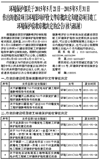 环境保护部关于2015年5月21日—2015年5月31日作出的建设项目环境影响评价文件审批决定和建设项目竣工环境保护验收审批决定的公告(核与辐射) 时间:2015-06-09 09:32 来源:中华环境网 作者:admin 点击:次 环境保护部关于2015年5月21日—2015年5月31日作出的建设项目环境影响评价文件审批决定和建设项目竣工环境保护验收审批决定的公告(核与辐射) (责任编辑:admin)