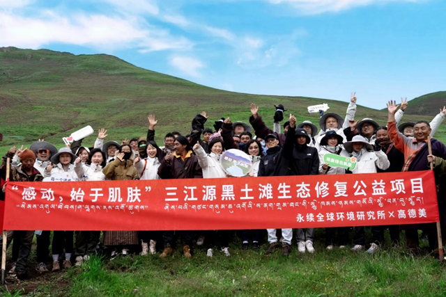 7月26日,由高德美支持,永续全球环境研究所(GEI)发起的“感动,始于肌肤”三江源黑土滩生态修复公益项目,首场治理行动在平均海拔4200米以上的果洛藏族自治州圆满完成。总计300余亩的退化草场得到有效修复。草场修复后,有望增加当地的生物多样性,减轻气候变化、草场退化对社区牧民生活的影响。