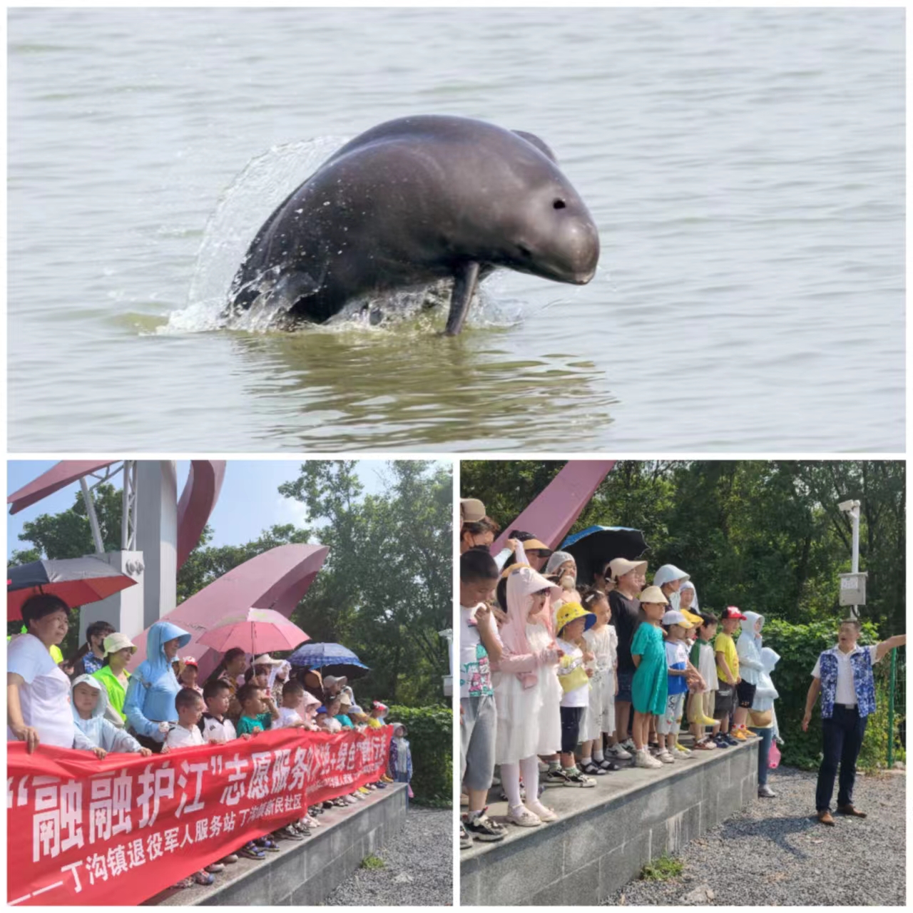 一群来自江苏扬州江都区丁沟镇的25名特殊孩子, 日前,走进了长江三江营段,参与了“红色+绿色”江豚研学行。活动由扬州市生态环境局牵头,联合了扬州市江都区江豚保护协会与江都区丁沟镇退役军人服务站,让孩子们在退役老兵与江豚保护志愿者的陪伴与引导下,接触平时在课堂上学不到的新奇事物,学习江豚等水生动物知识,身临其境地感受自然,拥抱自然。