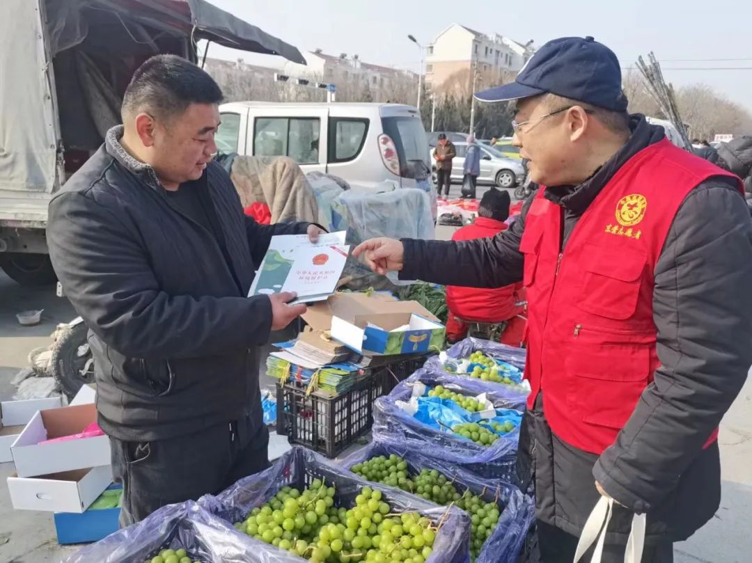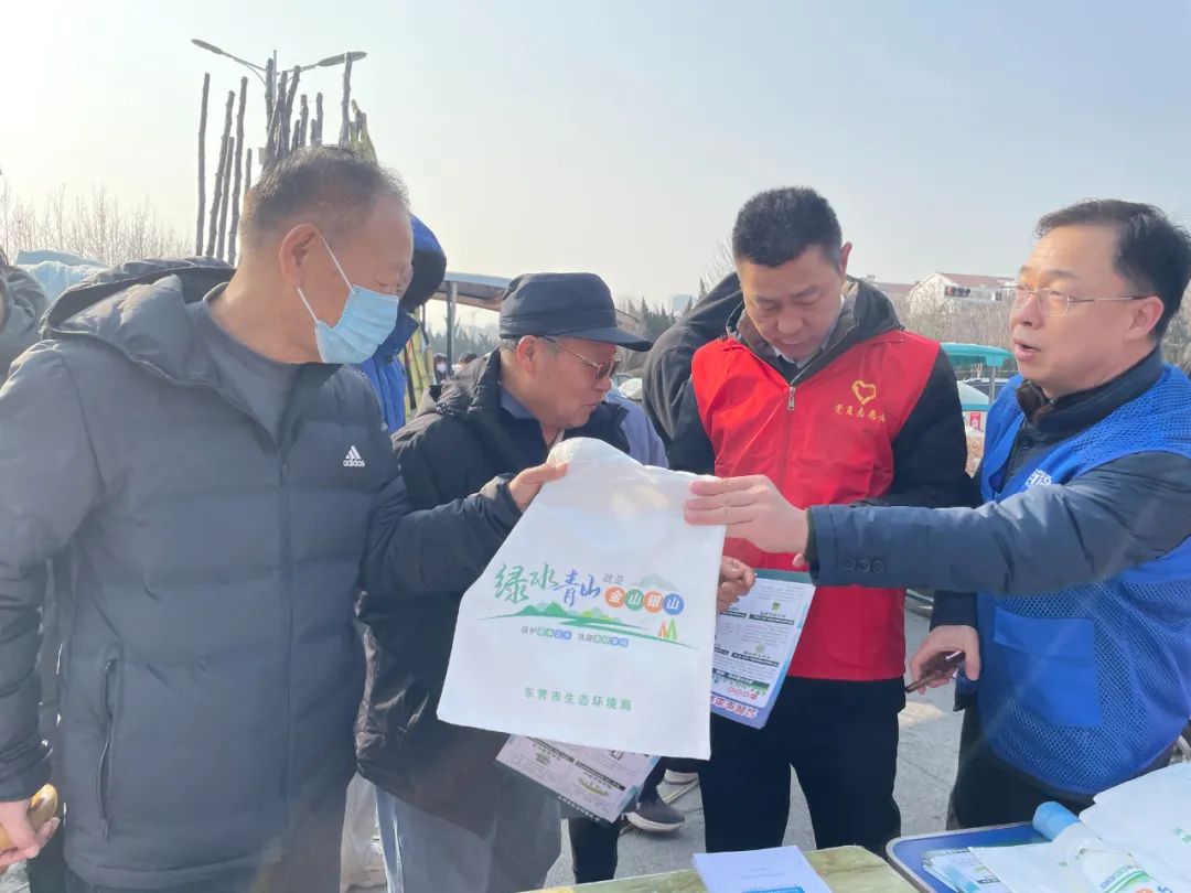 “大爷,给您一个帆布袋,能多次使用,方便又环保。”“小朋友,春节期间,要节水节电,低碳出行,做好垃圾分类。”......春节期间,山东省东营市生态环境局组织党员、环保志愿者们带着环保购物袋、低碳生活宣传册走进大集,倡导群众度过一个平安、祥和、绿色的春节。
