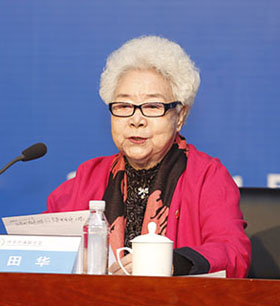 著名表演艺术家、中华环保联合会理事田华宣读年会倡议书